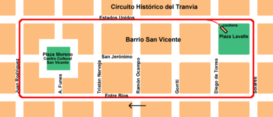 De este modo, el tranvía en la "República de San Vicente", que en aquellos tiempos se convirtió en un símbolo para la colonia y marcó una etapa en la historia del barrio expandiéndose a otros puntos de la ciudad, comenzará su recorrido en el trazado original utilizado entre los años 1920 y 1962, por las calles Solares, Entre Ríos y Juan Rodríguez, regresando por Estados Unidos hasta Solares, con una extensión de 16 cuadras, transitando por el umbral de la historia los fines de semana y feriados.