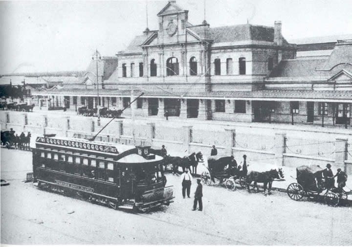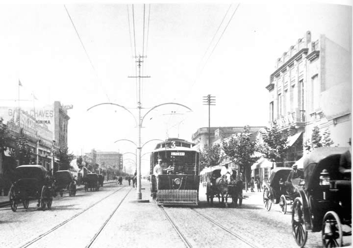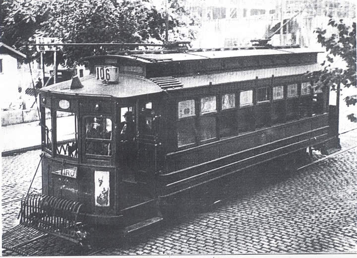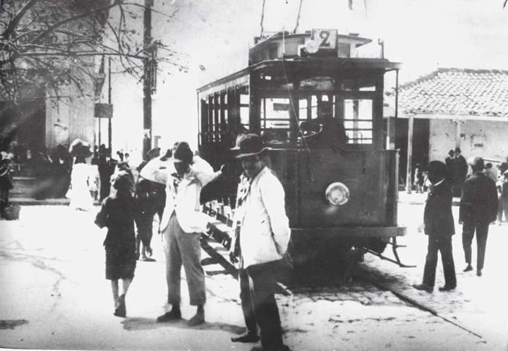 Anteriormente al servicio eléctrico había existido un servicio a caballos inaugurado hacia 1882. Dos empresas desarrollarían sus servicios a lo largo d e 12,800 Km., prestados por una veintena de coches, hasta 1910.