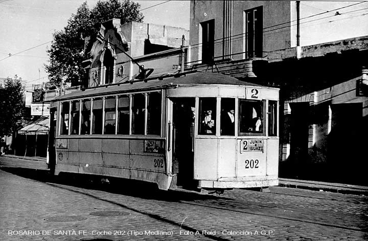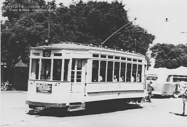 El servicio de tranvías eléctricos santafesino funcionó entre 1914 y 1961. En sus inicios la ciudad contaba con unos 70.000 habitantes. La red alcanzó una extensión de 45 kilómetros, servidos por 60 coches motores y ocho acoplados. Todos coches cerrados de dos ejes, de 32 asientos, con alimentación a troley de pértiga. Fue el único servicio del país que mantuviera el uso de acoplados hasta su final.